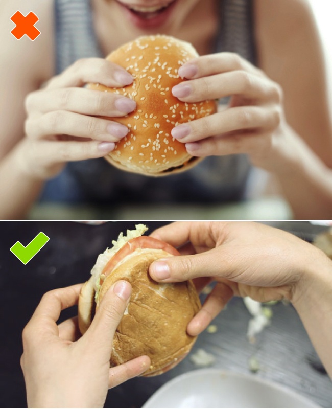 2. Tenir votre hamburger : les doigts doivent être placés méthodiquement pour éviter que tout ne déborde
