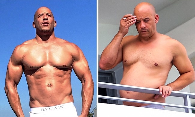 Vin Diesel n’a rien à prouver en matière de body-building, cela fait des années qu’il symbolise Mr. Muscles au cinéma. Quelle n’a pas été sa surprise quand en 2015 les internautes se sont déchaînés en critiques après avoir vu cette photo où il apparaît avec une bidoche et presque dépourvu de muscles. Il est vrai que le contraste est frappant et on a du mal à reconnaître l’acteur, mais de là à le fustiger... En fait il tournait Le dernier chasseur de sorcières, dans lequel il joue un personnage du 13e siècle, et il aurait été ridicule de le filmer avec un corps de culturiste. Il a cru pouvoir se relâcher un peu le temps d’un film sans devoir se justifier.