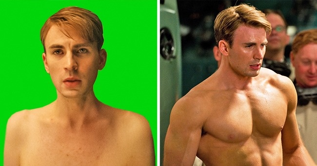 Chris Evans est une montagne de muscles. Il a été difficile de le rendre très mince dans la peau de Steve Rodgers. À l’initial, un doublage avait été utilisé, mais cela ne correspondait pas, car la gestuelle de Steve Rodgers n’était pas naturelle. C’est alors que les réalisateurs ont décidé d’avoir recours aux effets spéciaux. Une technologie numérique a affiné l’acteur. Toutes les scènes ont été tournées suivant 4 angles différents et il a même fallu rétrécir les jambes d’Evans pour qu’il semble moins grand parmi les autres acteurs du film.