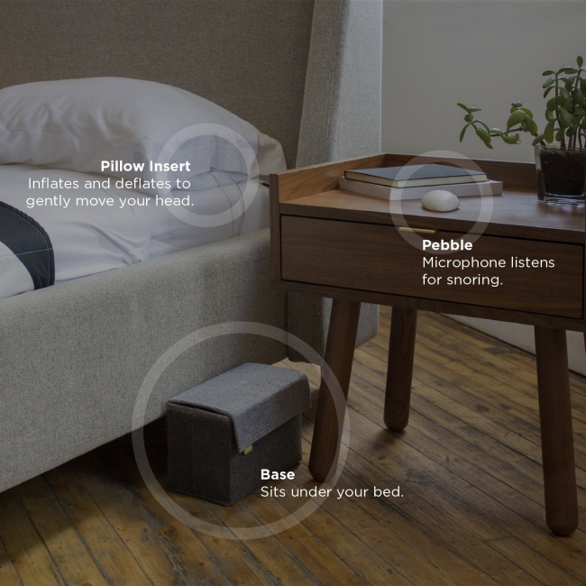 Ce dispositif va enfin permettre aux couples de se réconcilier ! Il fonctionne très facilement. Il suffit de placer l’insert sous votre oreiller et le petit « caillou » décoratif près de votre lit. Pendant votre sommeil, à chaque ronflement, l’insert va émettre des mouvements qui ne vous réveilleront pas, mais qui vous permettront de changer de position pour arrêter de ronfler. Cela se répètera toute la nuit si besoin ! C’est votre partenaire qui va être content(e) !