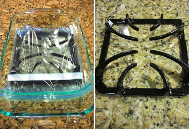 Le gras déposé sur les grilles peut être éliminé facilement grâce à l’ammoniaque. En effet, il vous suffira tout simplement de placer les plaques dans des sacs isothermes fermées en y ajoutant 2 à 3 cuillères d’ammoniaque. Laissez-les macérer pendant 12 heures avant de les rincer et de les retrouver comme neuves.
