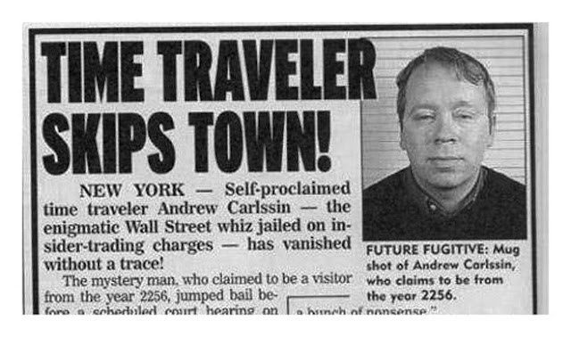 Lors de son interrogatoire, l’homme n’a cessé de clamer qu’il recevait des informations directement venues du futur. En effet, d’après lui, il a voyagé dans le temps à bord d’une machine qui l’aurait amené en 2256. Une personne inconnue a payé sa caution pour qu’il sorte de prison et plus jamais personne ne l’a revu…