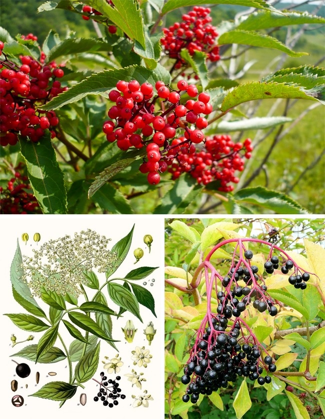 Les formes plus courantes des fruits sont les rouges et les noirs. Mais toutes les parties de cette plante sont toxiques. Il est fortement conseillé de se laver les mains si vous touchez du sureau. Seules les baies mûres (les noires) sont inoffensives et comestibles. C’est pour cela que l’on en retrouve souvent dans des bonbons, tartes ou boissons.