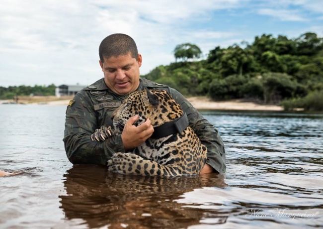 Lors d’un raid en pleine jungle, des soldats brésiliens ont trouvé un bébé jaguar très mal en point dans la forêt amazonienne. Ils l’ont pris avec eux et l’ont soigné. Cet animal a grandi auprès d’humains et n’a jamais connu la nature. Les responsables locaux ont accepté que les soldats gardent l’animal dans leur caserne sous une surveillance plus que rapprochée. Jiquitaia n’est aujourd’hui ni plus ni moins qu’un gros chat qui aime les humains et ne cesse de les remercier, car elle leur doit la vie.