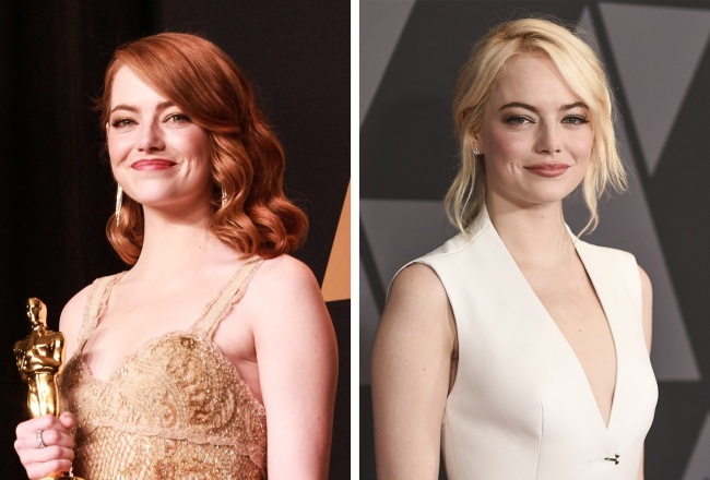 Emma Stone a également dit adieu à son roux pour partir vers le blond… Cette couleur adoucit ses traits et la confondrait presque avec les pinups des années 50 !