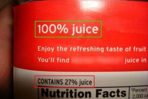 11. Le jus 100 % à base de fruit qui en fait n’en contient que 27 %