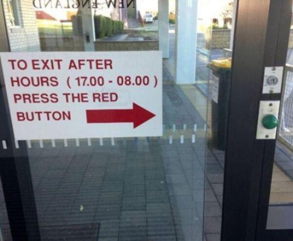 « Pour sortir entre 17 h 00 et 8 h 00, appuyez sur le bouton rouge »