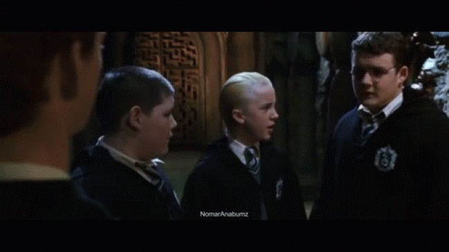 La dernière phrase prononcée par Malfoy n’était pas prévue. L’acteur a tout simplement oublié son texte, voici pourquoi il a prononcé ces mots. Mais les réalisateurs n’ont pas coupé la scène, car le personnage plutôt mauvais et sarcastique était totalement capable de prononcer ces mots !