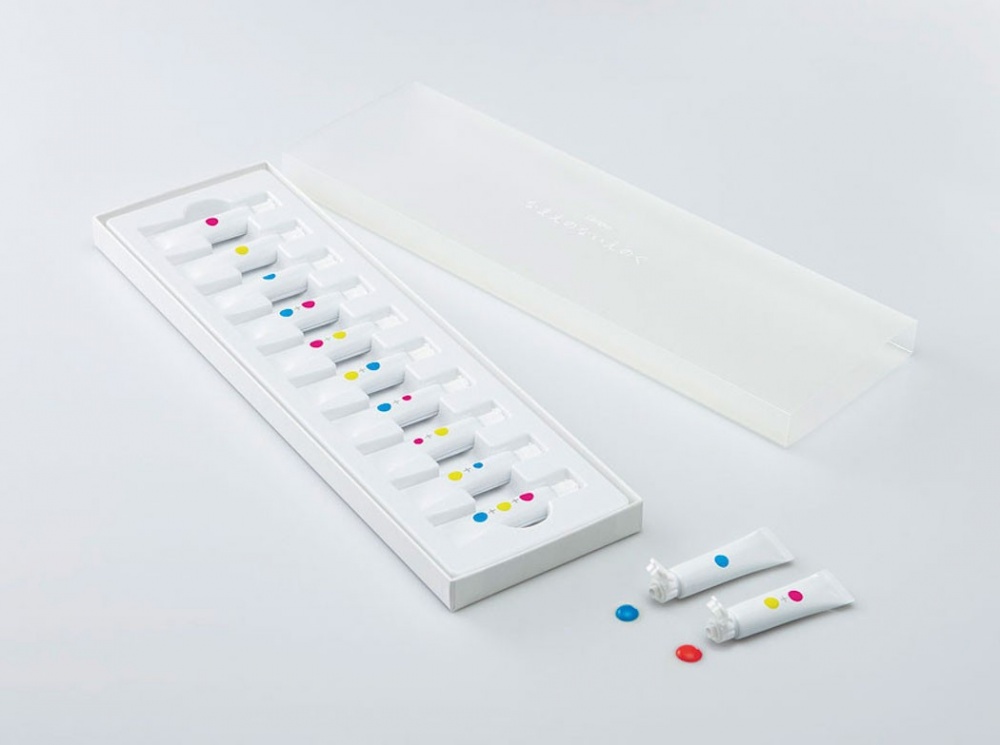 Créés par des designers japonais, ces tubes de peinture n’ont ni nom, ni couleurs. En effet, ils sont blancs et ne montrent que l’association de couleurs qui feront la couleur définitive. Par exemple, pour le vert, un point bleu et un point jaune sont représentés sur le tube. Pourquoi un tel design ? Tout simplement pour permettre aux enfants de mieux apprendre les combinaisons, mais aussi pour les aider à développer leur imagination et leur réflexion.