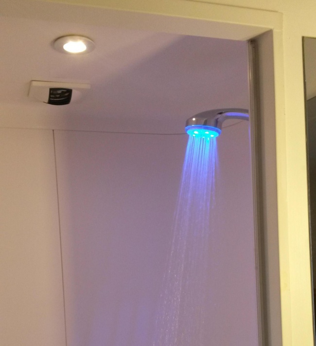Un simple chauffage intégré permet d’éviter la buée sur le miroir. Ingénieux !