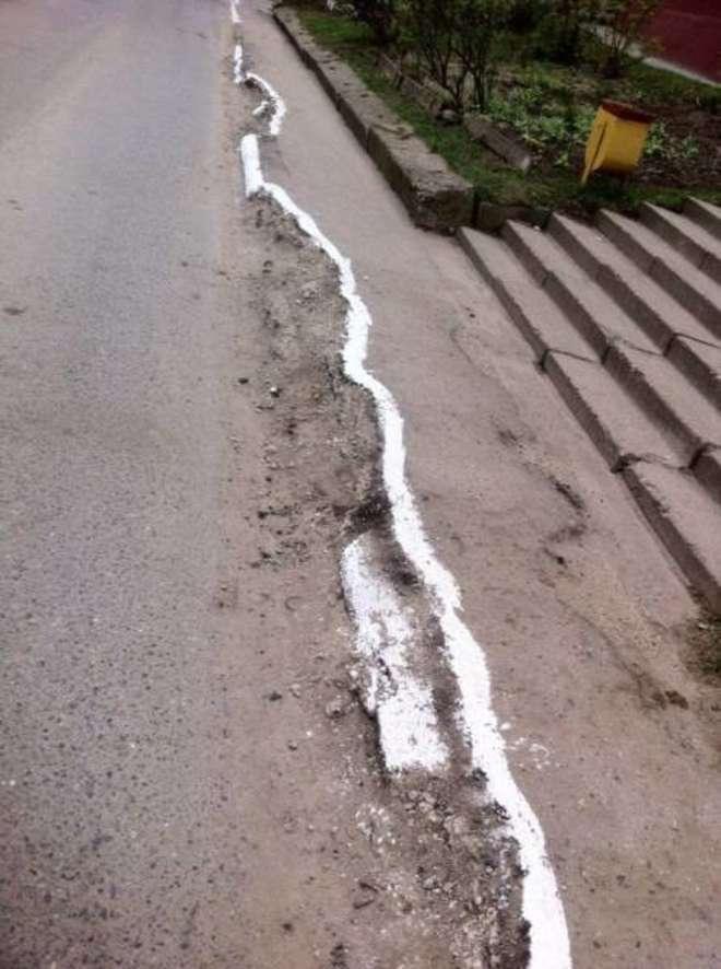 2. Tracer la ligne blanche délimitant le trottoir n’importe comment