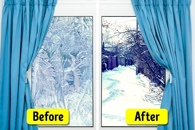 Frottez l'intérieur des fenêtres avec une éponge trempée dans de l'eau salée. Cela aura pour but d'éviter que le givre ne congèle vos carreaux. Vous pourvez également conserver un petit sac en tissu rempli de sel sur le rebord de votre fenêtre.