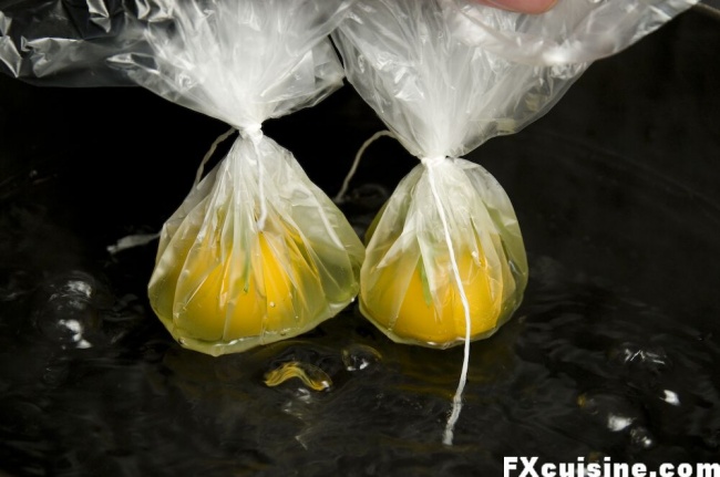 Beurrez ou huilez un petit sac isotherme, puis cassez votre œuf à l’intérieur. Nouez le sac à l’aide d’un élastique ou de la nouette vendue avec, en essayant d’être le plus proche possible de l’œuf. Enfin, plongez le tout dans de l’eau bouillante pendant 3 minutes. Cliquez ici pour voir la recette complète.