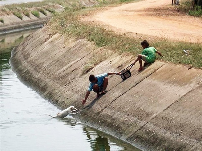 5. Ces deux jeunes garçons ont risqué leur vie pour sauver ce petit chien tombé dans le canal