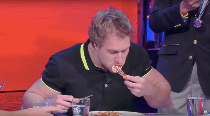 15. Ce jeune homme détient le record du plus grand nombre de tranches de bacon jamais mangées en 5 minutes. Il s’agit de 182 tranches !