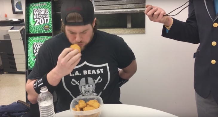 1. Le record de nuggets mangés en 3 minutes est de 37, soit environ un poids de 642,12 grammes