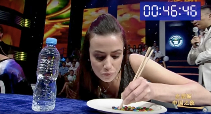 8. Un record de M & M's mangés avec des baguettes a été proclamé : il s’agit de 65 pièces en 1 minute