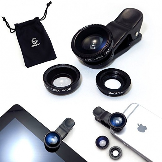 Ce kit Aukey se compose de 3 lentilles différentes : grand angle, ultra grand-angle (de type “fisheye”) et une lentille macro. Pour ceux qui aiment prendre des photos, mais ne peuvent pas embarquer avec eux leur panoplie complète d’appareil photo, généralement volumineuse, ce kit est tout simplement parfait