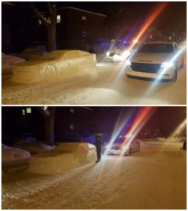 3. La police s’arrête pour verbaliser une voiture faite en neige !