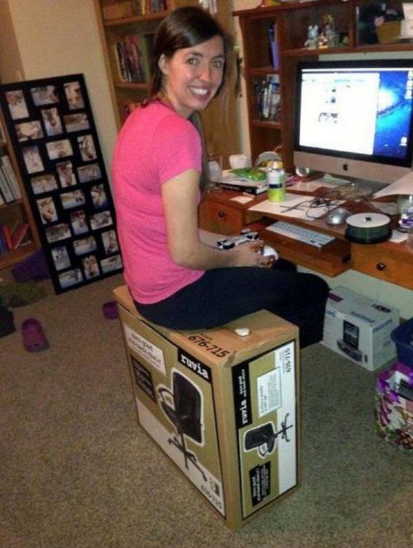 13. Monter une chaise, c’est long et difficile et puis à quoi bon ? Le carton fait tout aussi bien l’affaire !