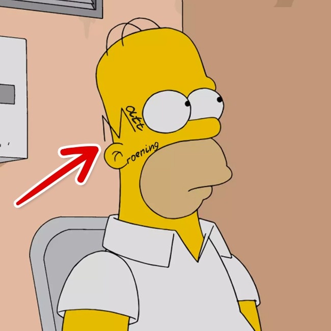 Le créateur du dessin animé a annoncé que ses initiales étaient visibles dans chacun des épisodes, et ce, au moins une fois ! Nul n’a réellement su trouver où. La réponse a été dévoilée dans l’un des épisodes de la 16e saison. En effet, ses initiales sont représentées sur le personnage d’Homer : le M pour « Matt », n’est autre que la mèche de cheveux et le G de Groening est représenté dans son oreille.