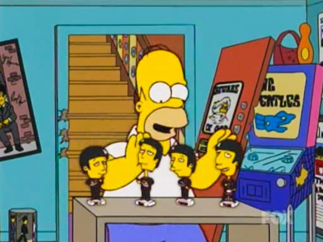Dans le dernier spectacle donné, les trois membres encore vivants se sont rassemblés, c’est-à-dire George Harrison, Ringo Starr et Paul McCartney. John Lennon quant à lui, était mort bien avant ledit spectacle. Mais dans l’un des épisodes, la chanson « mother » est diffusée. Donc les 4 membres du groupe sont représentés dans Les Simpson.