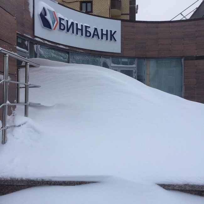 2. La porte de cette entreprise a entièrement été recouverte de neige pendant la nuit