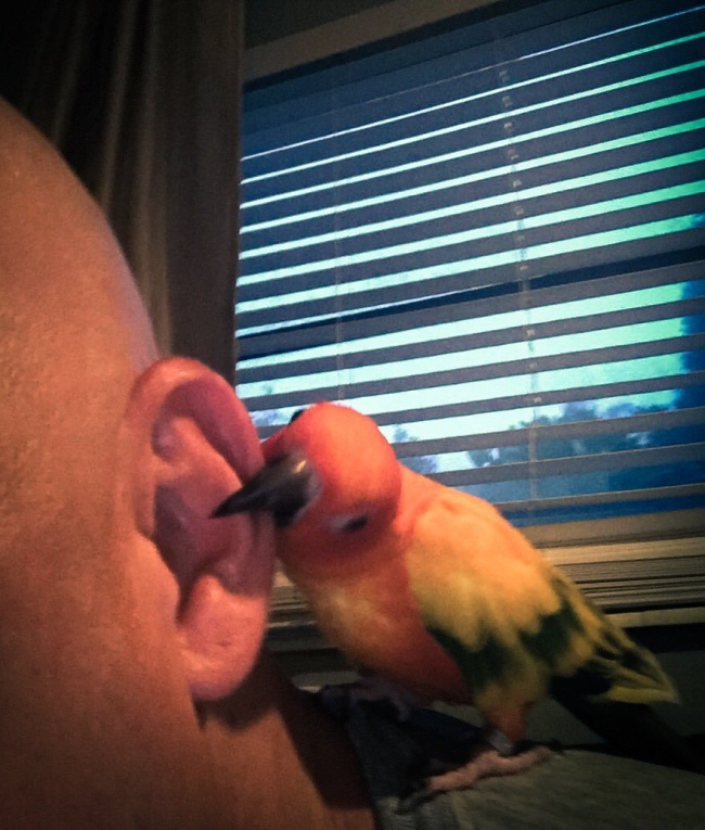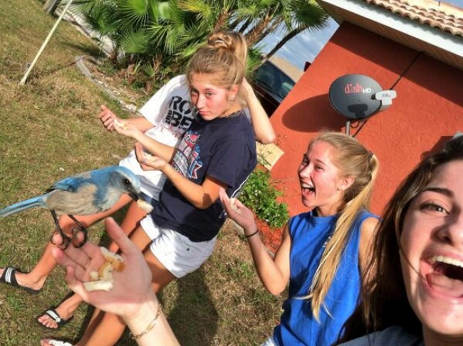15. Quand tu veux te prendre en photo avec ton oiseau sur l’épaule et que celui-ci change tes plans au moment où tu appuies sur le bouton !