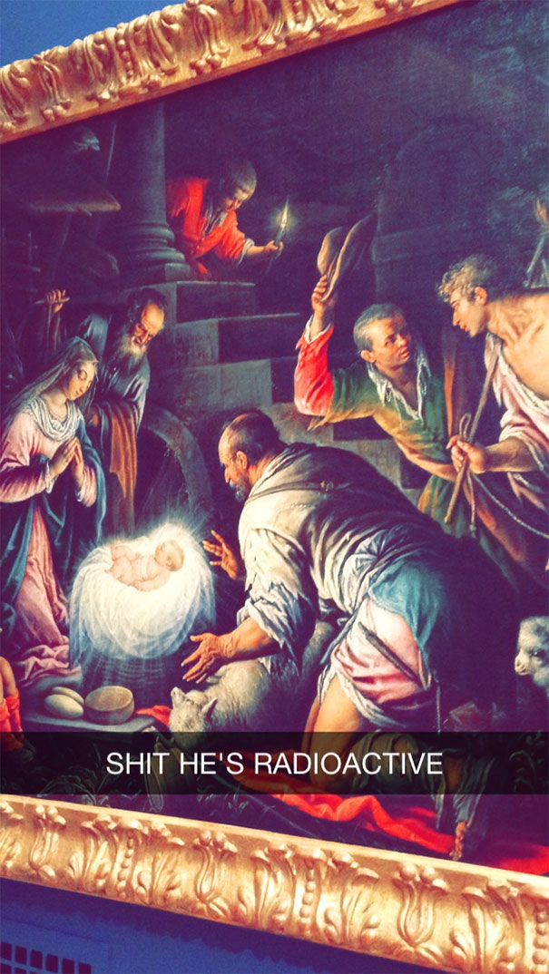 Vos enfants ne s’ennuieront plus jamais au musée ! Demandez-leur d’utiliser leur imagination pour réinterpréter les œuvres qu’ils découvrent et ils s’en donneront à cœur joie. Snapchat leur permet de prendre des photos en y ajoutant des commentaires, et ils s’en servent surement déjà avec leurs copains. Voyez ce qu’on peut faire : plus c’est décalé et anachronique, plus c’est drôle.