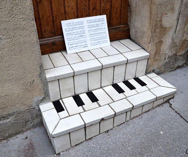 2. Ces marches ont donné l’idée d’y coller des éléments noirs pour imiter un piano