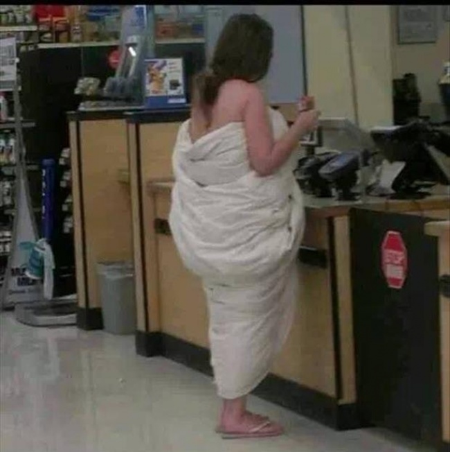 4. Sortir du lit est parfois compliqué… Cette femme a décidé de l’embarquer partout avec elle