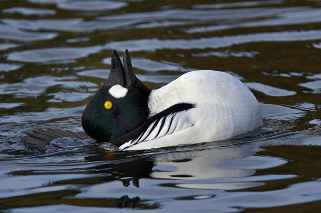 Ce canard a la particularité de ressembler à un lapin sur l’eau, lorsqu’il bascule sa tête en arrière.
