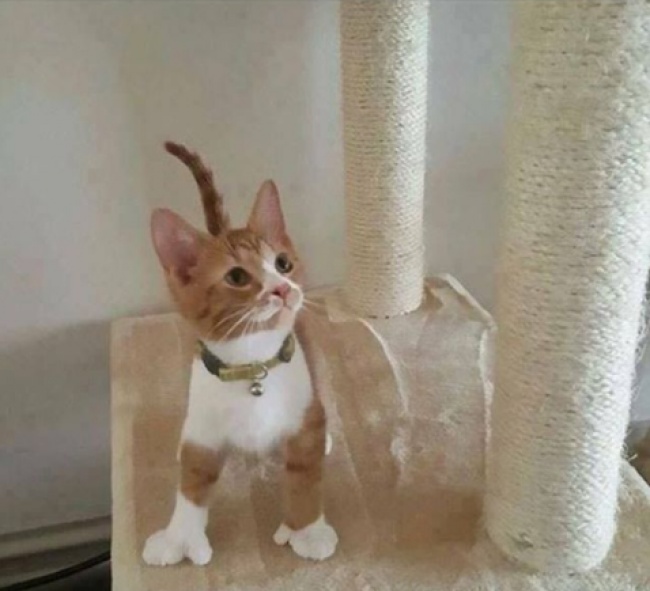 Les malformations arrivent également chez les animaux, comme ici, ce chaton est né avec des « pouces » énormes.