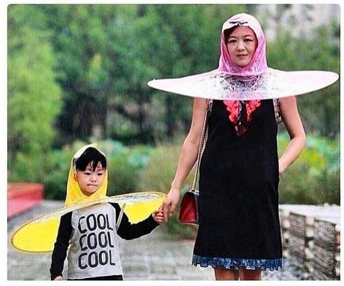 11. Marcher sous la pluie les mains libres, mais la tête et le corps protégés