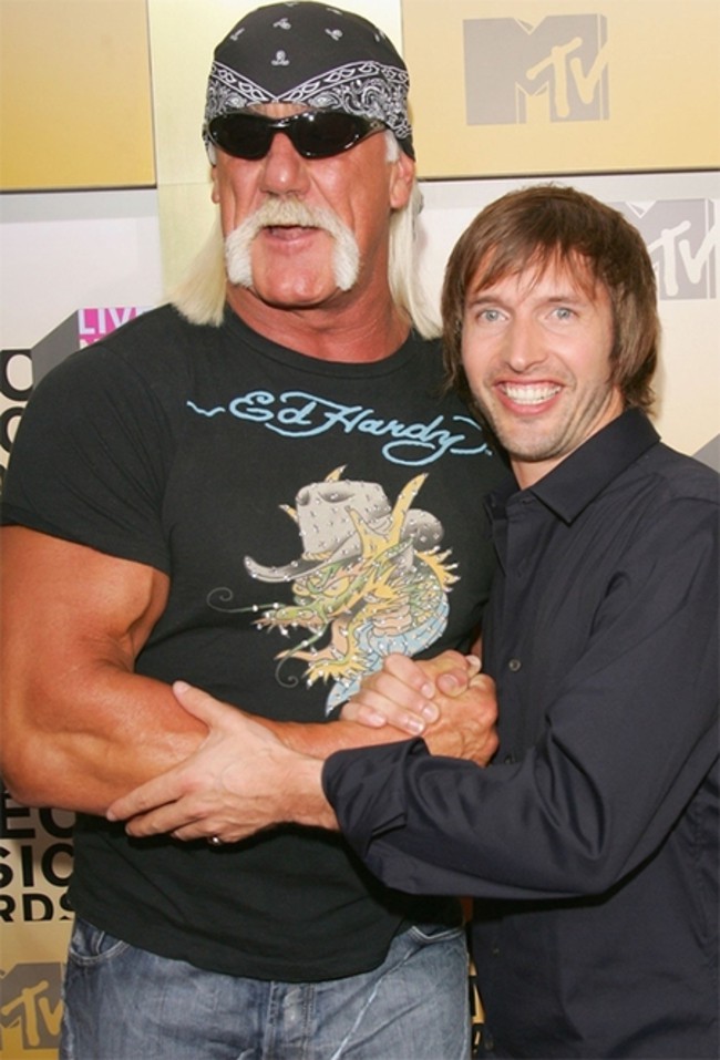 6. Même les stars sont fans des stars ! Ici James Blunt réalise un rêve d’enfant en rencontrant Hulk Hogan !