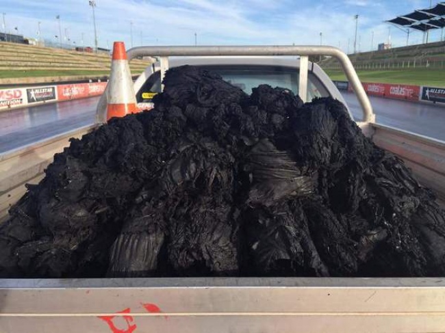 Après les courses automobiles, et principalement de Dragster, voici les restes de pneus que l’on peut trouver sur le circuit !
