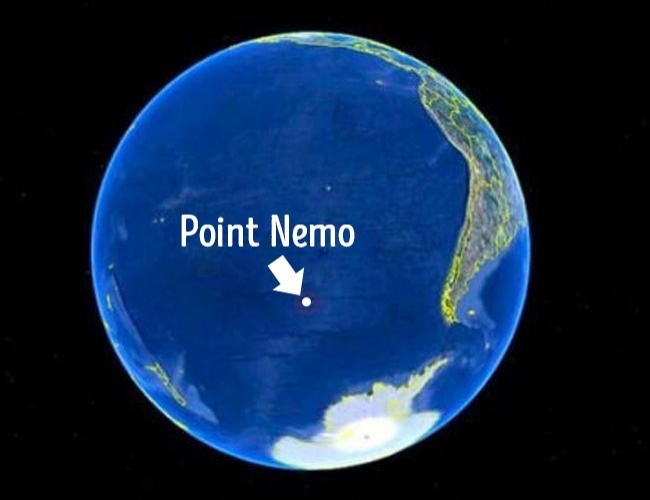Ce point représente l’endroit le plus éloigné de toutes les terres du globe. Il porte ne nom du célèbre capitaine Némo.