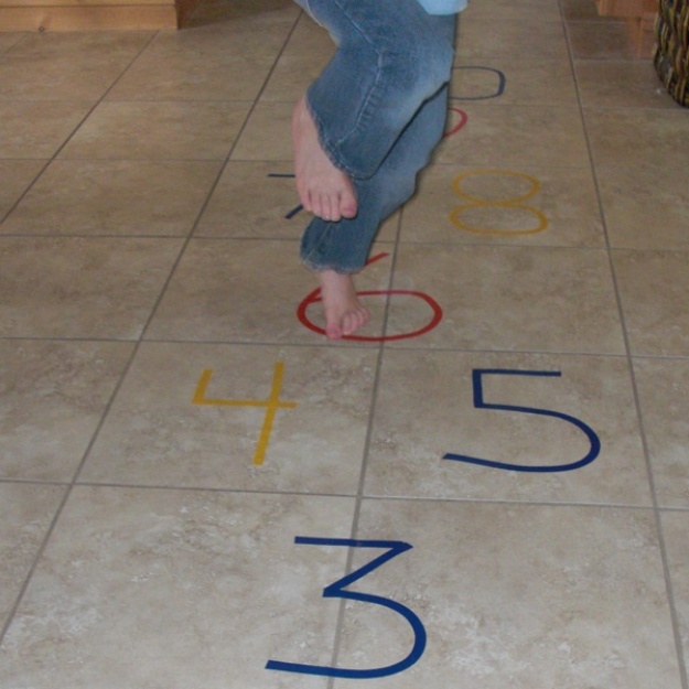2. Remplacez les craies par du ruban adhésif pour jouer à la marelle, même à l’intérieur.