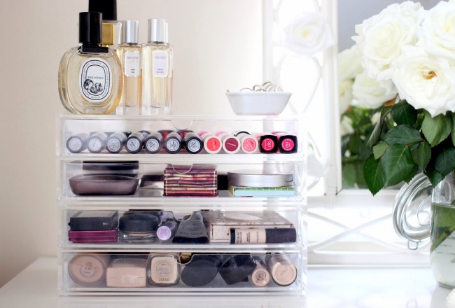 Rangez vos produits cosmétiques dans des présentoirs à bonbons, c’est joli comme tout et c’est très pratique !