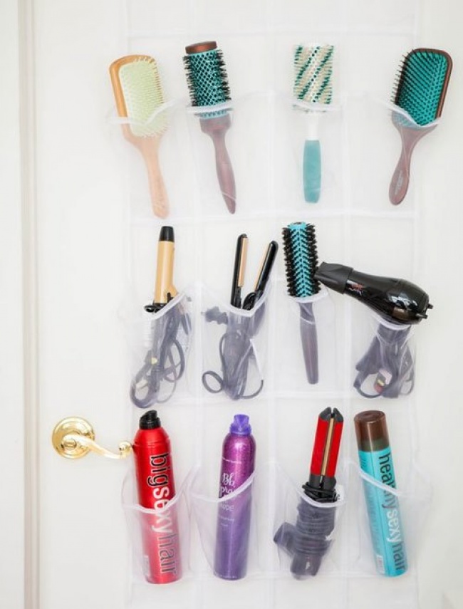 Rangez votre matériel de coiffure dans un rangement spécifique comme celui-ci et fixez-le sur votre porte.
