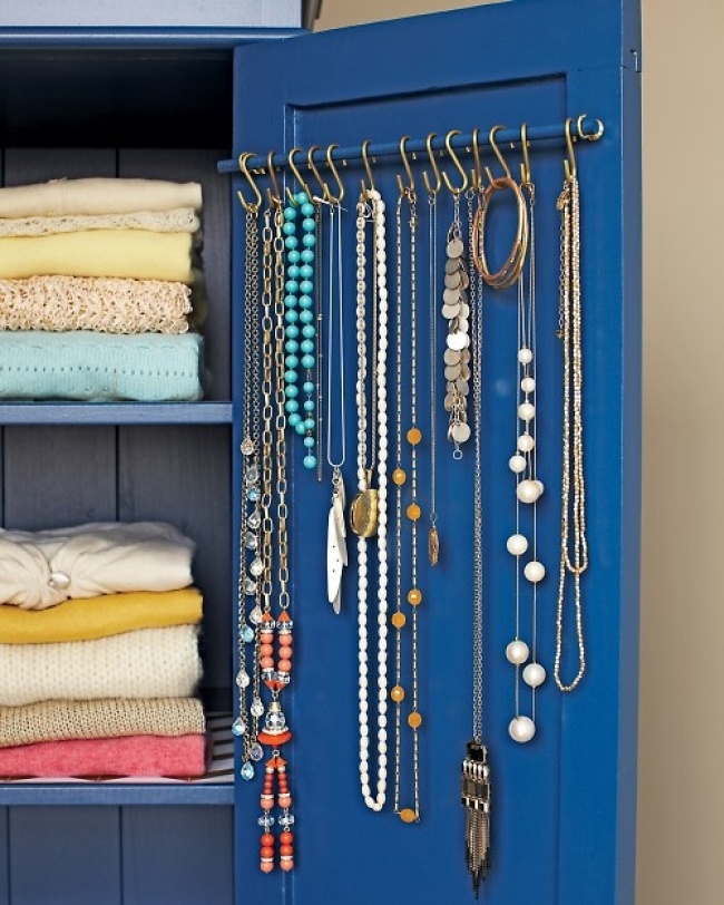 Ajoutez des crochets sur la face intérieure de la porte de votre placard et accrochez-y vos colliers pour ne plus jamais avoir à les démêler.