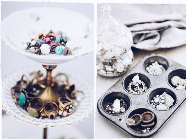 Utilisez un présentoir ou un moule à gâteaux pour accueillir vos bagues et vos petits bijoux.