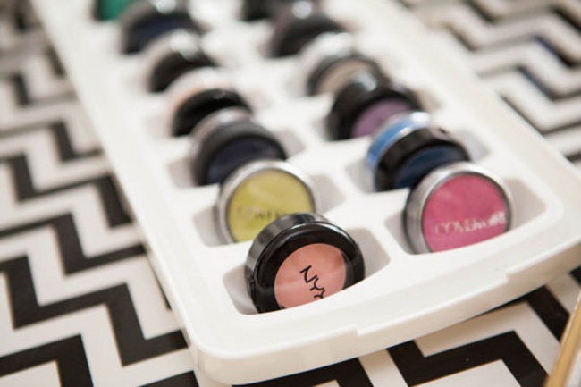 Astucieux le bac à glaçons pour entreposer vos fards à paupières !