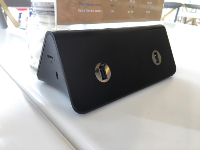 11. Ce restaurant dispose de prises de chargeurs sur la base de l’affiche du menu