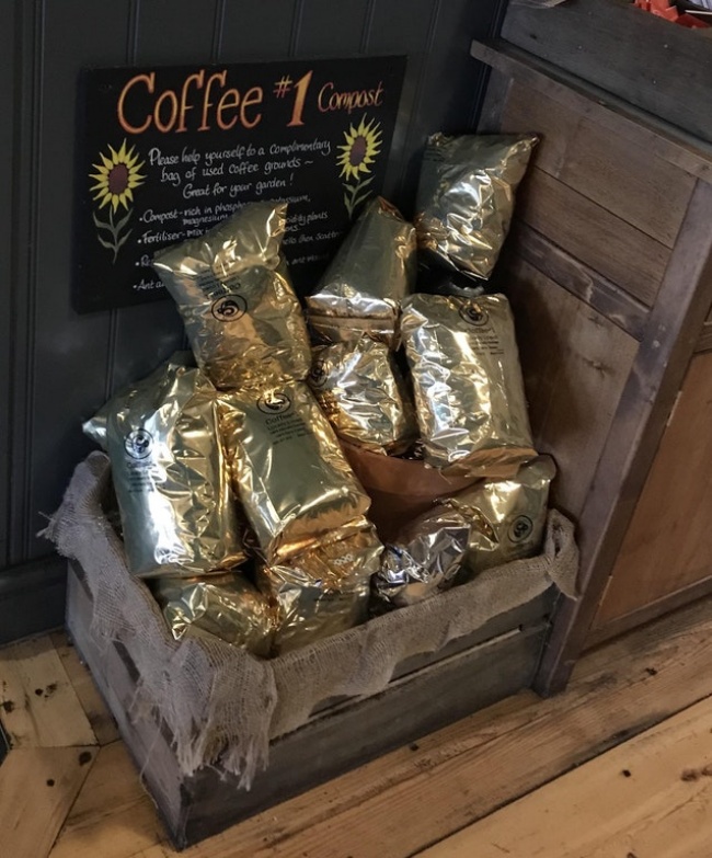 14. Dans ce café, les responsables mettent du compost à disposition des clients, fabriqué à partir de leur marc de café usagé