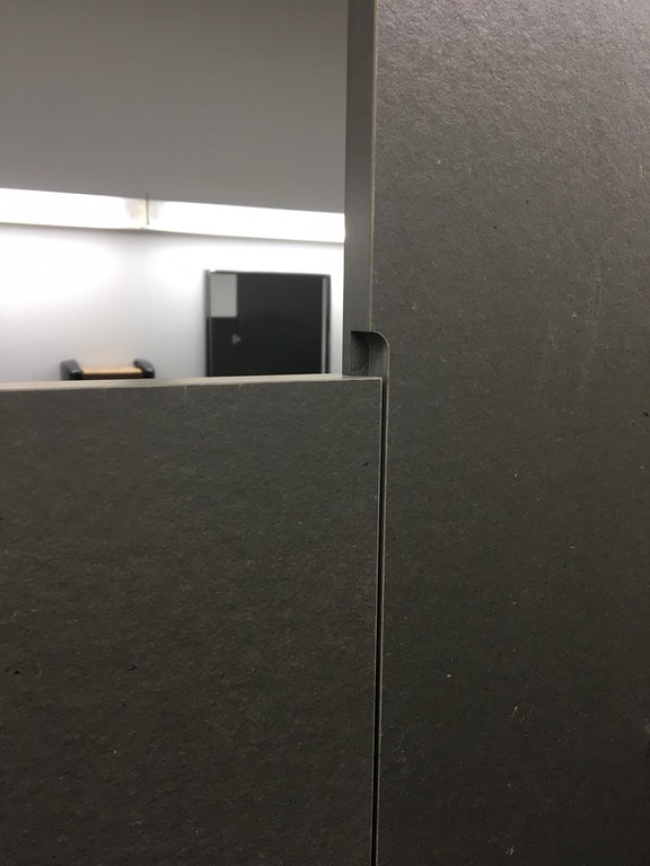 27. Dans ces toilettes, les portes disposent d’un petit renfoncement pour permettre leur ouverture plus facilement