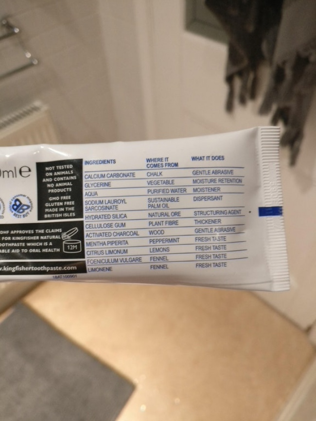 25. Ce dentifrice ne fait pas que faire briller les dents, il détaille également la composition des ingrédients, leur provenance ainsi que leurs actions