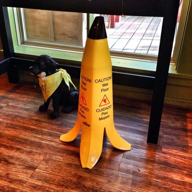 8. Enfin un panneau annonçant les sols humides et glissants fort convaincant !