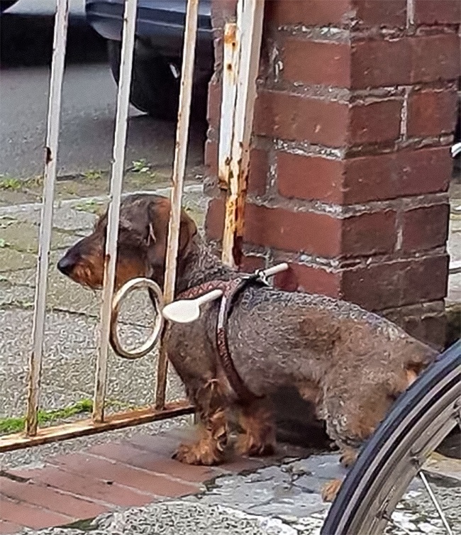 23. Certains petits chiens ont tendance à passer entre les clôtures. Placez une cuillère en bois dans leur harnais et le tour est joué !