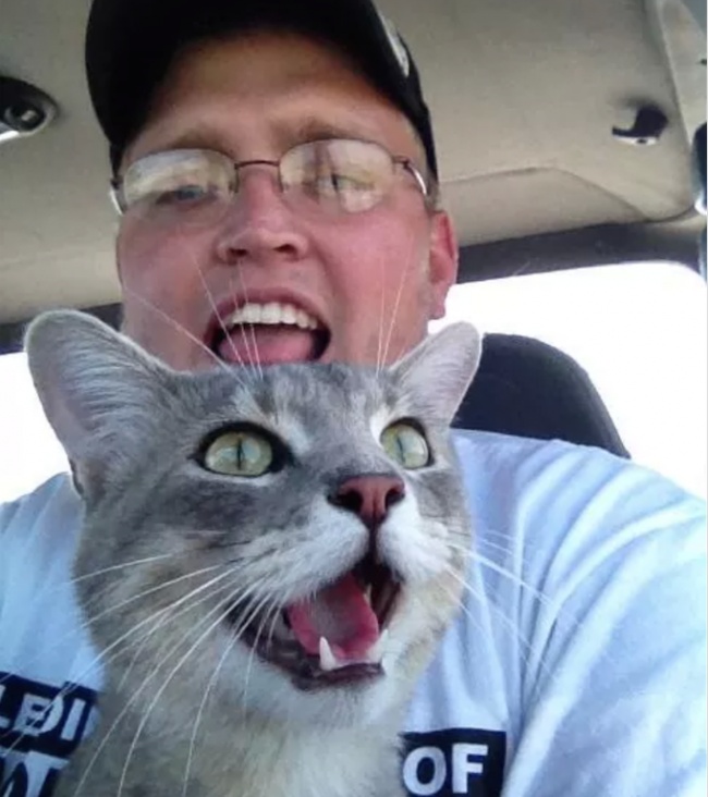 19. Ce chat suit son maître partout où il va et pousse même la chansonnette dans la voiture !